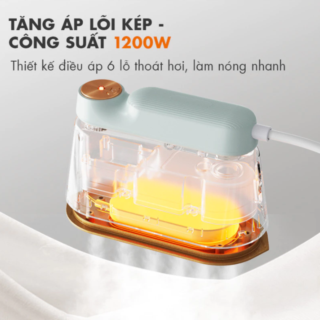 - Công suất mạnh mẽ: 1200W giúp tạo ra hơi nước mạnh mẽ, làm phẳng các nếp nhăn cứng đầu một cách hiệu quả.