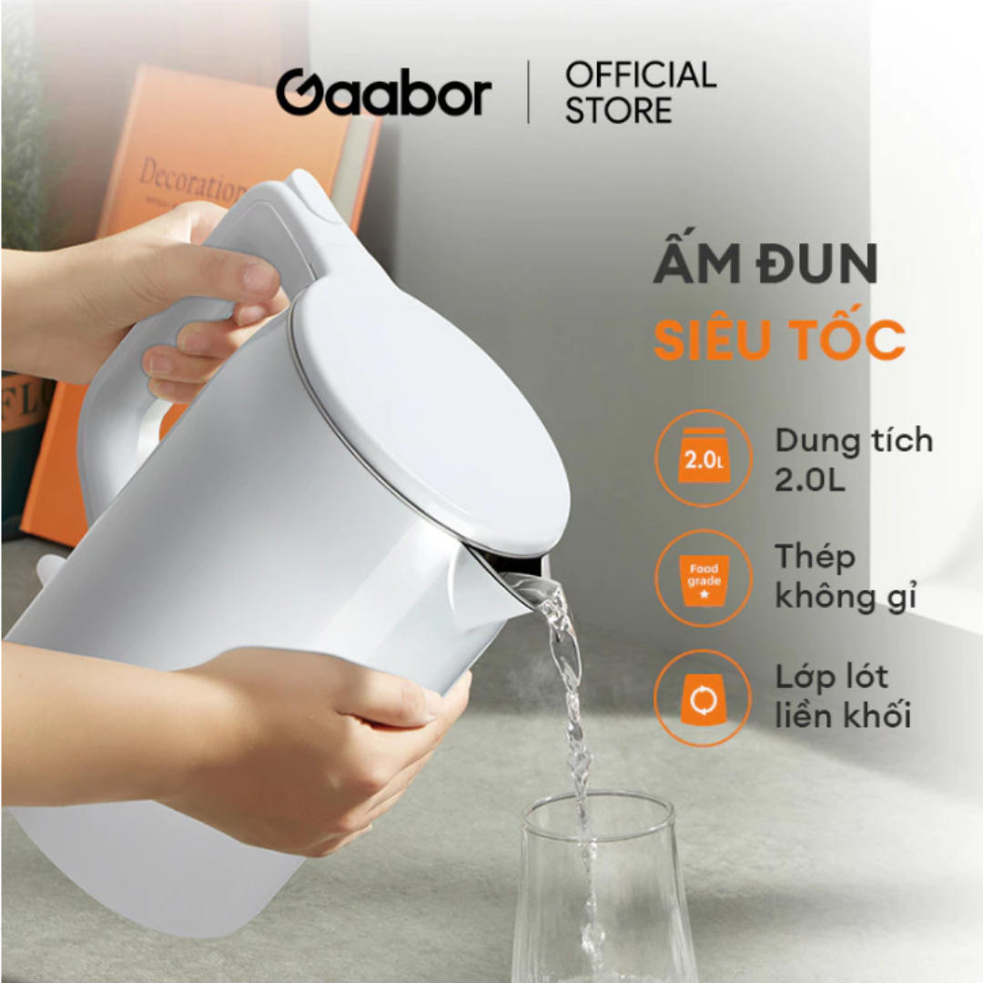 - Tên sản phẩm: Bình đun siêu tốc GAABOR EK20M-WH01A