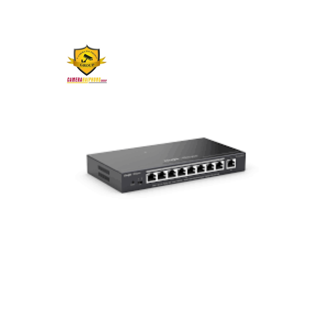 - Số cổng: RG-ES209GC-P có 9 cổng Ethernet, trong đó 8 cổng hỗ trợ Gigabit và 1 cổng quản lý.